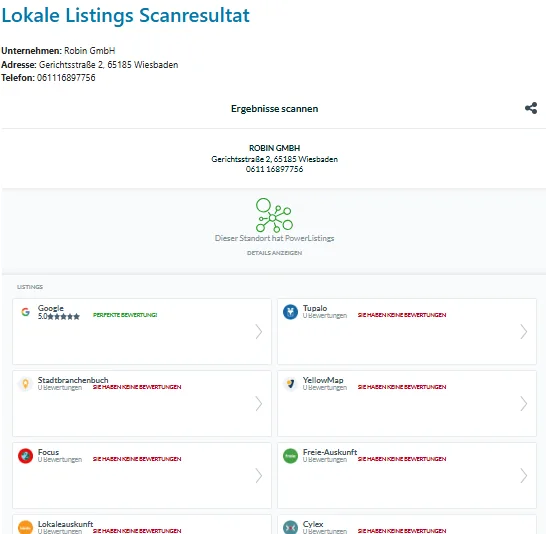 We provide a free service to check your local seo status in a snapshot! Just enter your website address and your E-Mail to receive a (one-time) snapshot about how good your google profile, NAP consistency and visibility in business portals is.